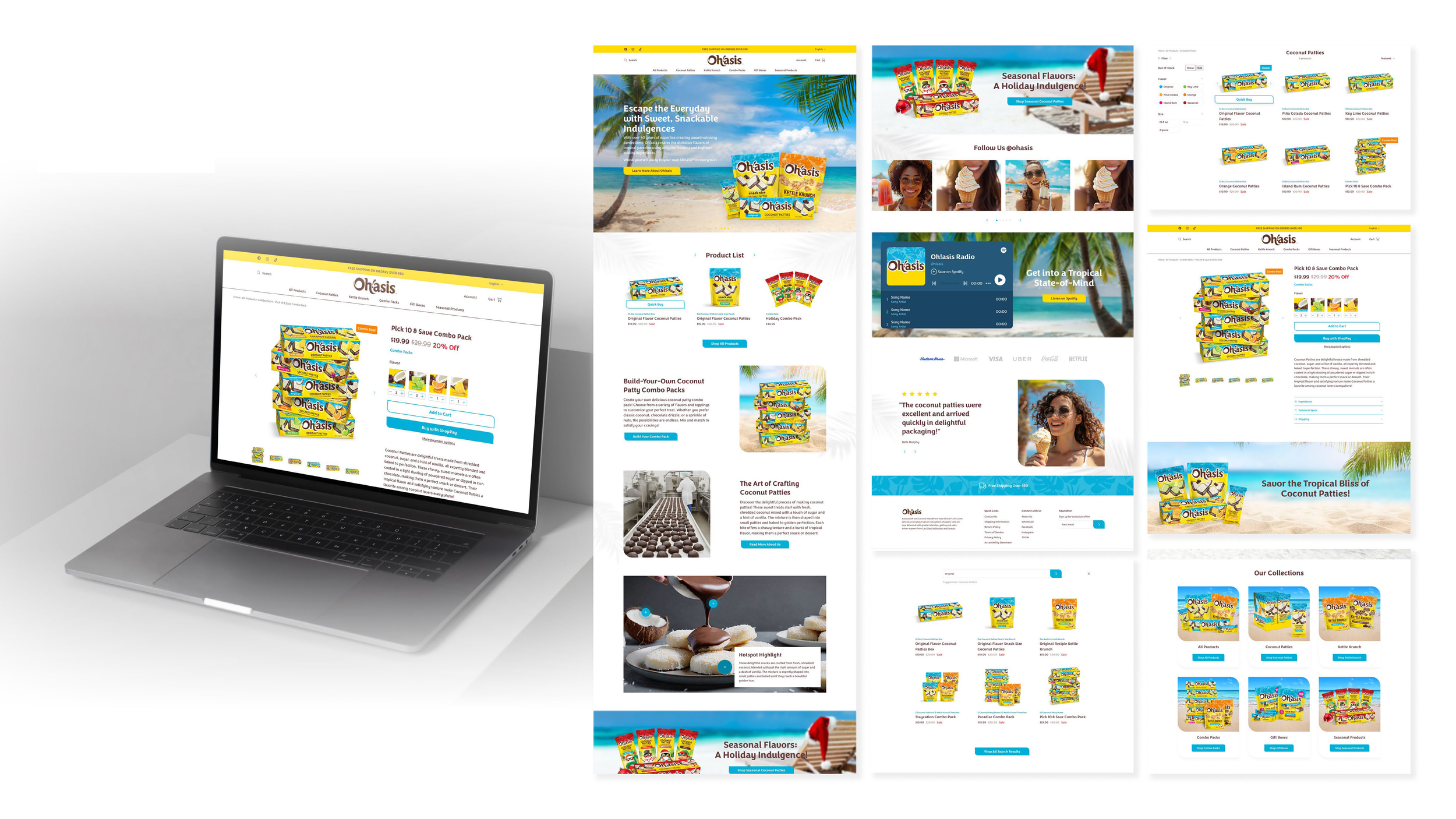 This website was restricted to using a Shopify template the client could update on their own. The bright colors and relaxing imagery brought the paradise-inspiration from the brand into the online web store.